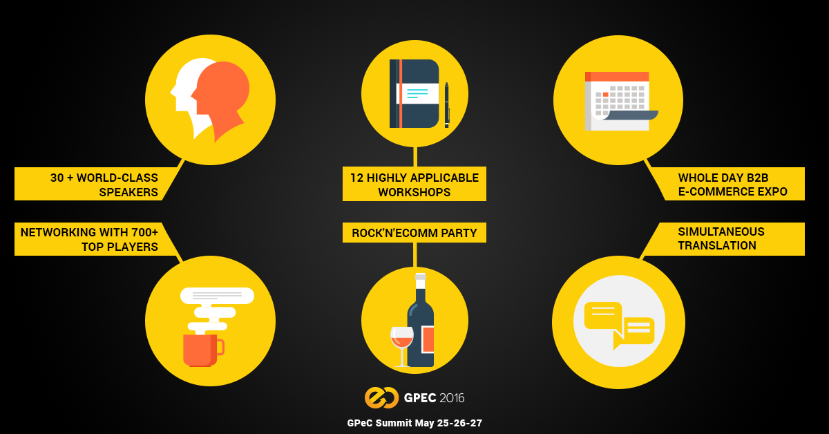 Așa cum am promis, doar cei mai buni vin la GPeC Summit pe 25-26-27 Mai pentru 3 zile de e-commerce Premium: Conferință, Expo, 12 Workshop-uri aplicate X 90 minute fiecare, networking cu elita pieței autohtone și internaționale (Marea Britanie, Polonia, Bulgaria, Cehia, Estonia, Ungaria, Republica Moldova) și… un Super Party în seara zilei de 25 Mai de la ora 20:00 alături de organizatori, speakeri și participanți cu un concert live The R.O.C.K. (Tribute Band to AC/DC). :-)