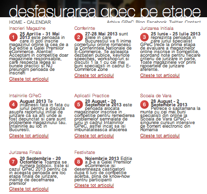 Dupa cum stiti, ne aflam in prima etapa de jurizare a magazinelor inscrise la GPeC 2013 – etapa care se va incheia pe 25 iulie. Pana atunci, 20 de specialisti in e-commerce analizeaza cele peste 120 de magazine participante acordand prima serie de note, conform criteriilor de jurizare GPeC.